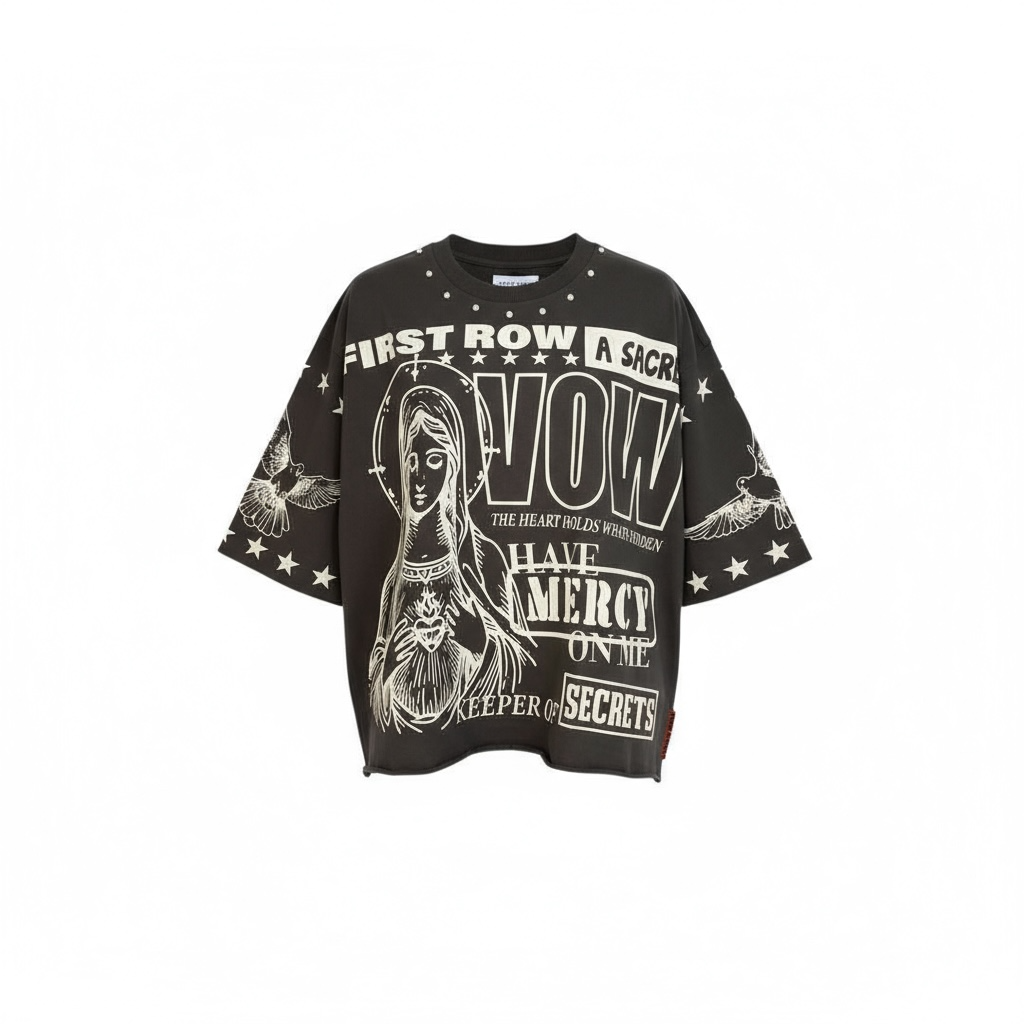 First Row ‘A Sacred Vow Secrets Blessing' Cropped T-Shirt (Grey) FRM1028A