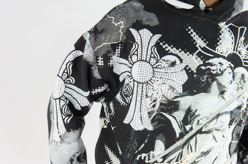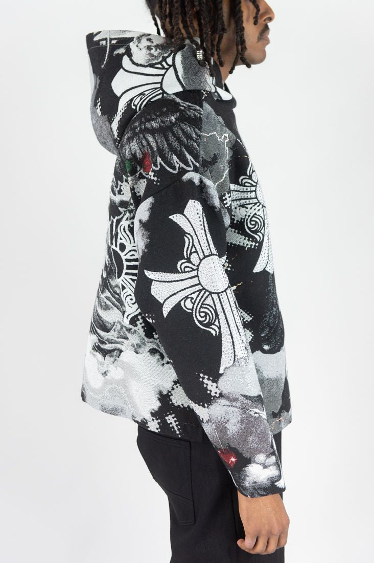 Rebel Minds 'Cross Angel' Rhinestone Tapestry Hoodie (Black) 152-338