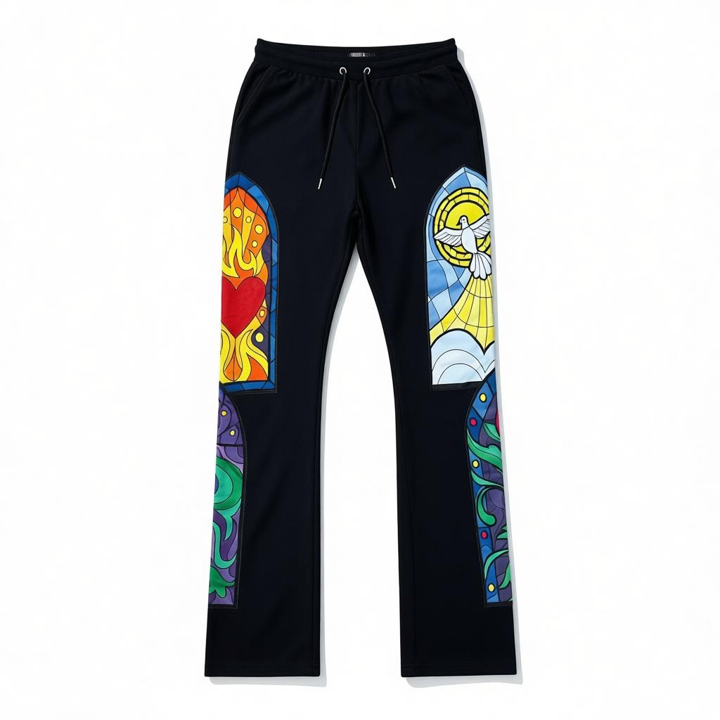 Black Pike 'Stained Glass' Stacked Sweatpants (Black) FB2534S
