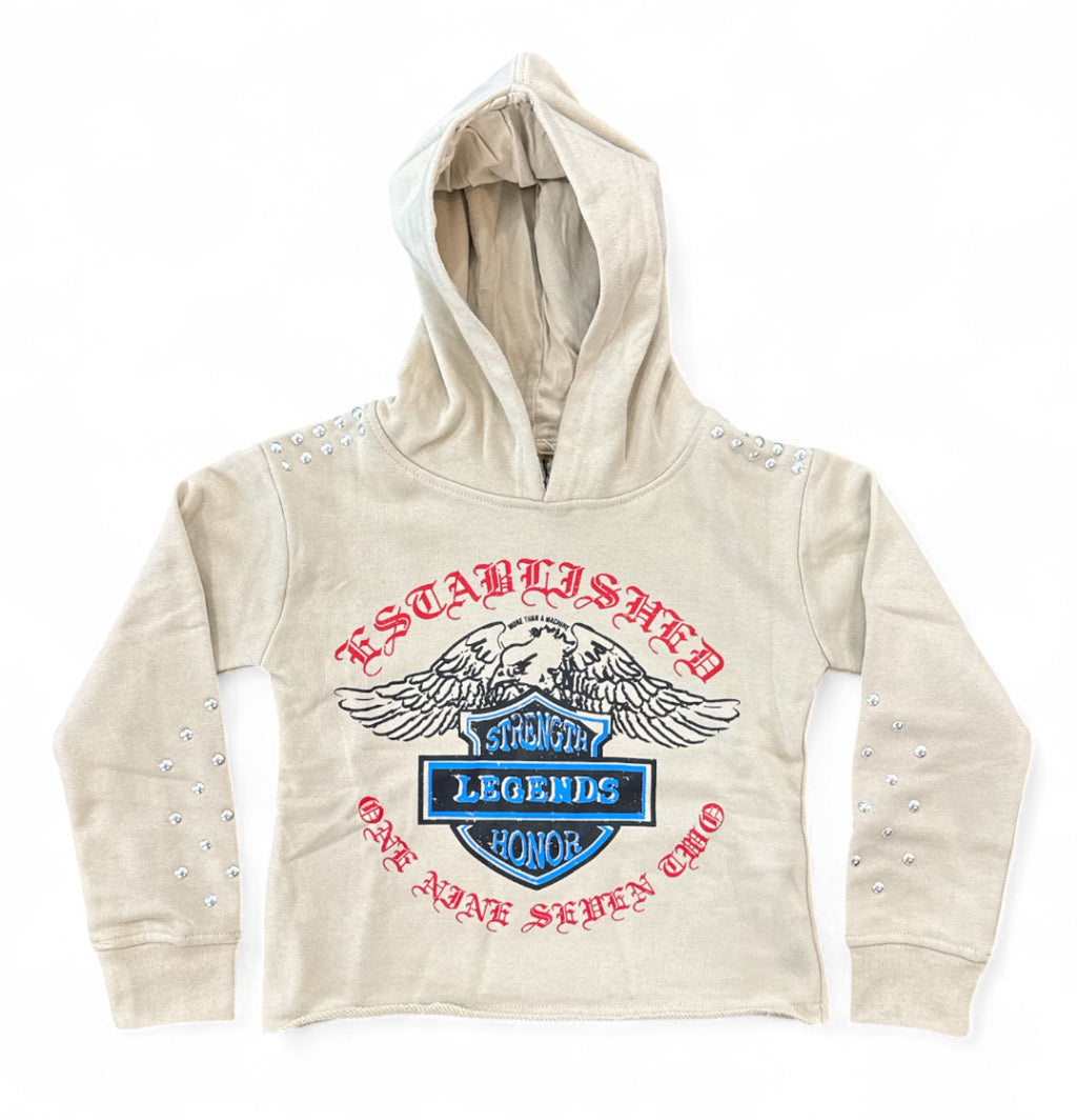FWRD Kids 'Established' Studded French Terry Pullover Hoodie (Stone) FW-10586K