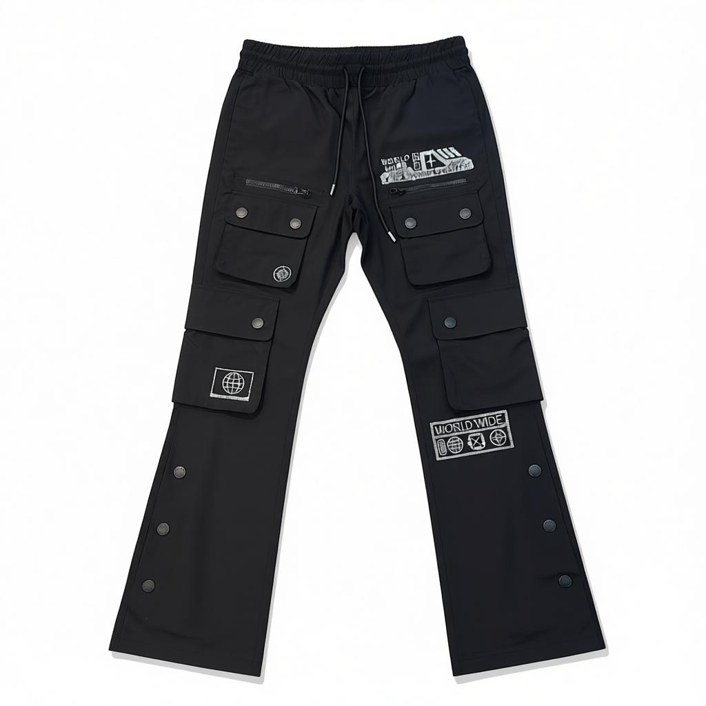 Kloud9 'World Wide' Rhinestone Nylon Stacked Cargo Sweats (Black) – Style P25356