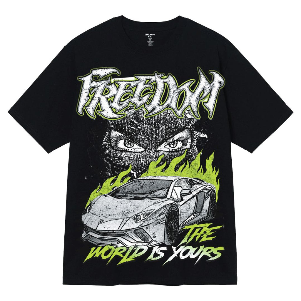 Upgrade your everyday streetwear with the 3Forty Inc. “Freedom” T-Shirt in Black (Style A180). Designed with a bold graphic and a clean normal fit, this men’s streetwear t-shirt delivers timeless style, comfort, and great value.
