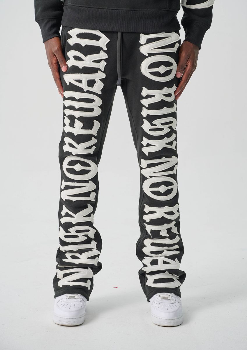 Spark 'No Risk No Reward' Fleece Stacked Sweatpants (Black/White) S5301