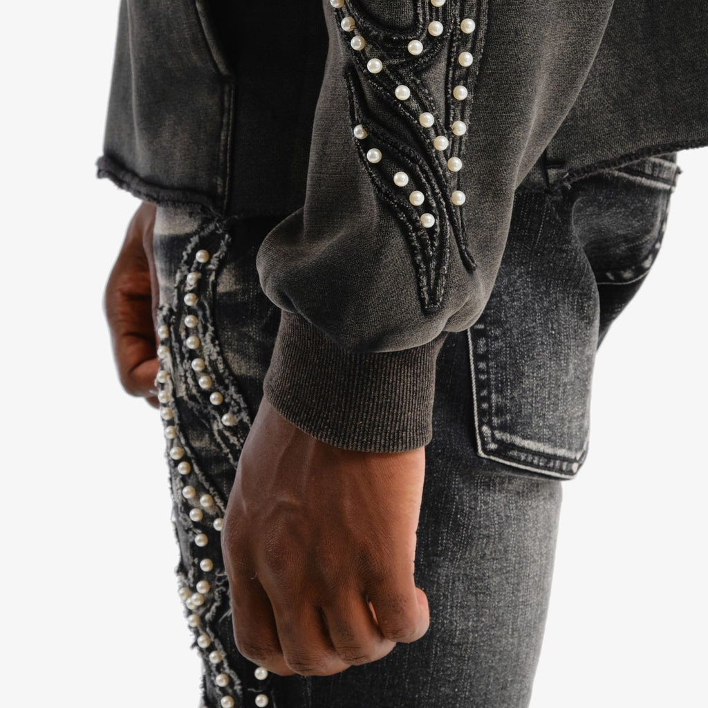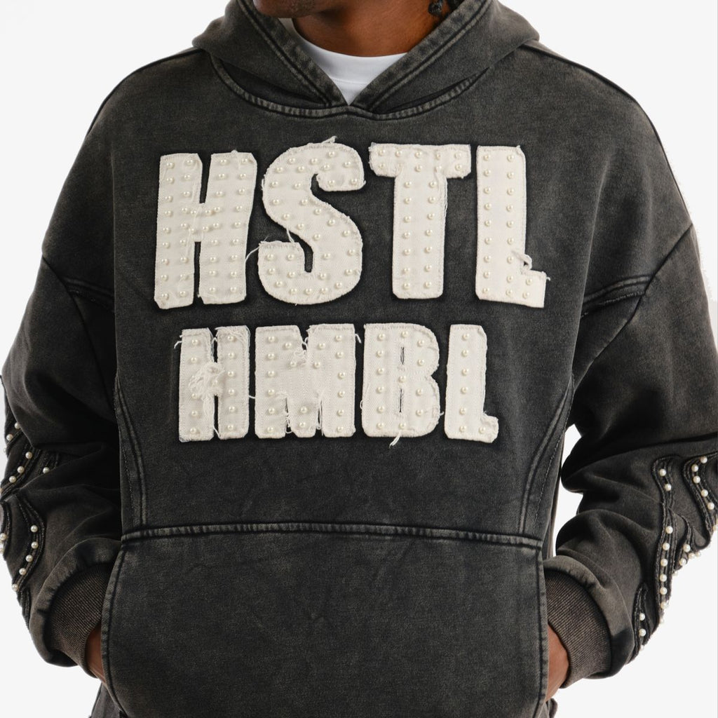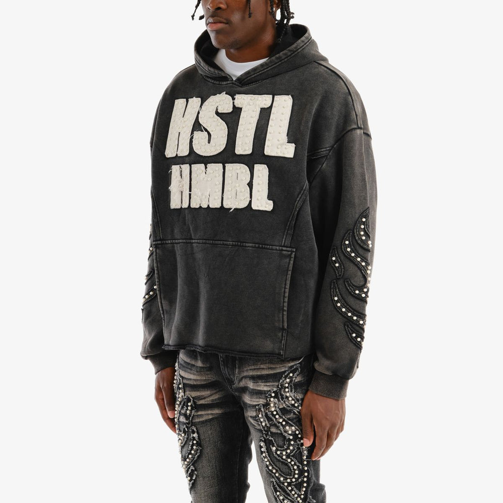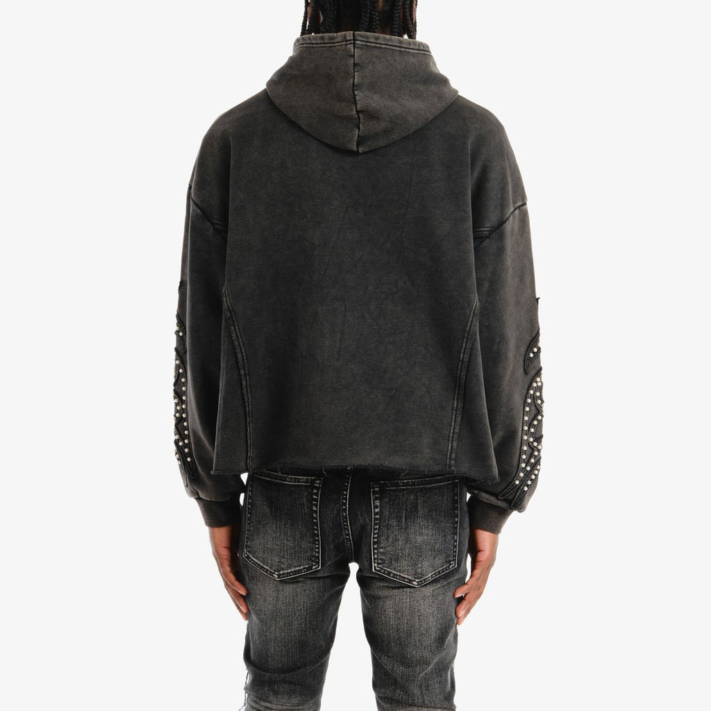 VOYAGE STUDIO 'Hustle Humble' Terry Cropped Hoodie (Washed Black) 53J14