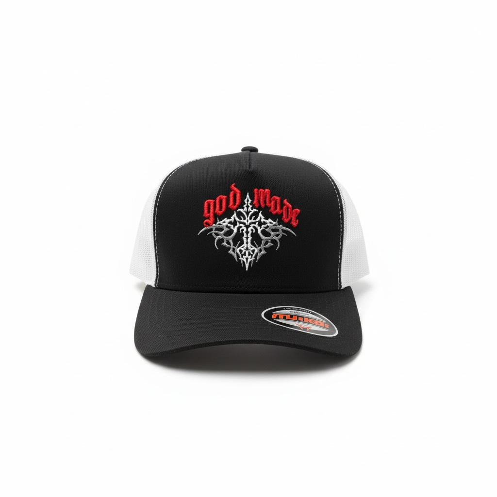 MUKA 'God Made' Trucker Hat (Black/White) T5499B