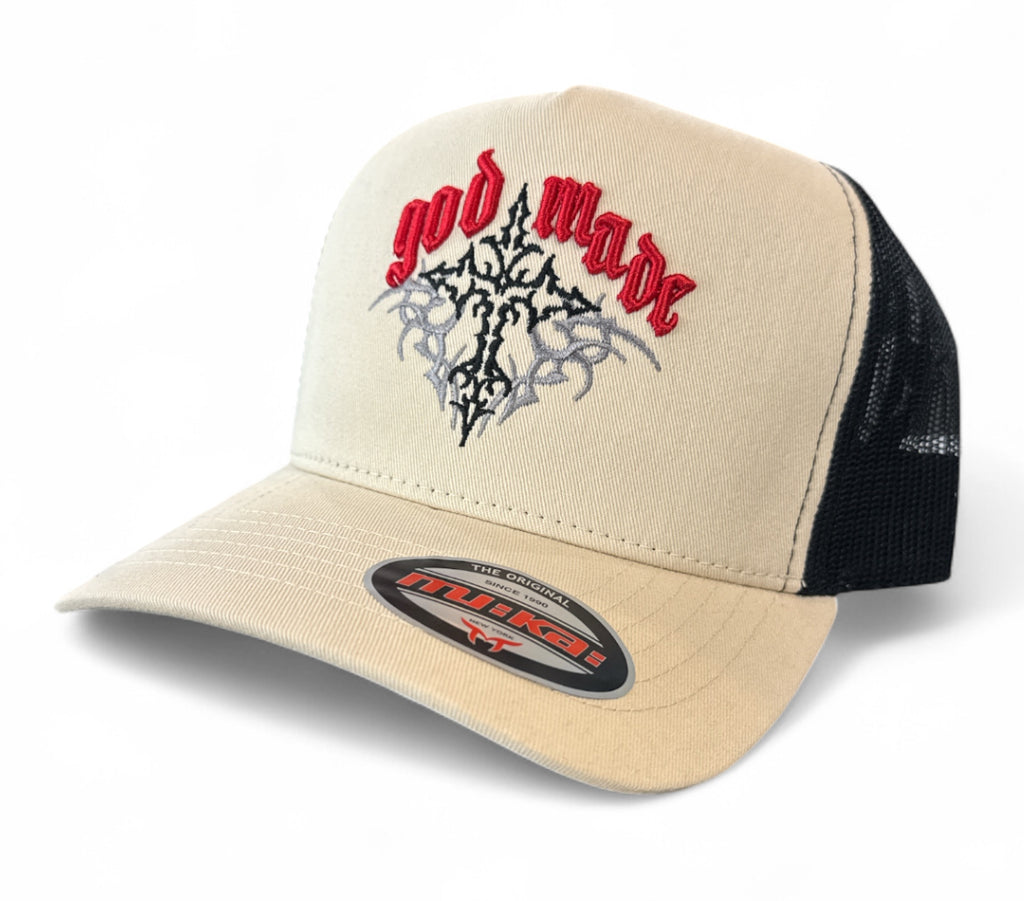 MUKA 'God Made' Trucker Hat (Oatmeal/Black) T5499B