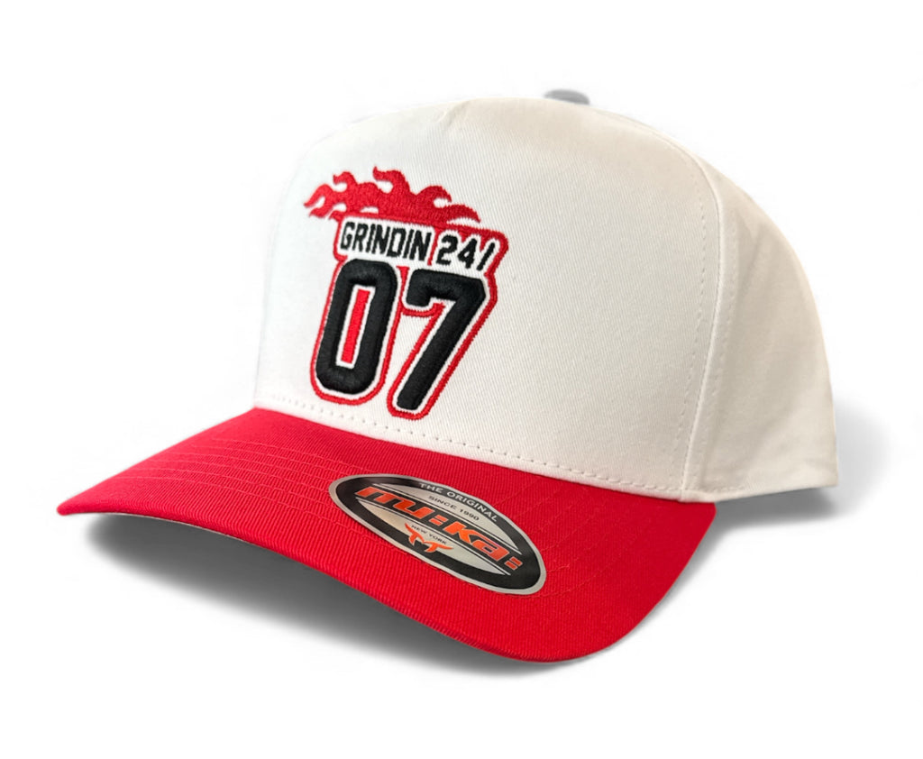 Perfect for pairing with stacked denim, graphic tees, hoodies, sweats, and sneaker-matching outfits, this white and red snapback hat adds color and confidence to any streetwear fit. Whether you’re searching for a men’s streetwear hat, a fashion snapback, or a statement accessory that represents ambition, the MUKA Grindin 24/7 snapback blends premium design with modern street fashion.