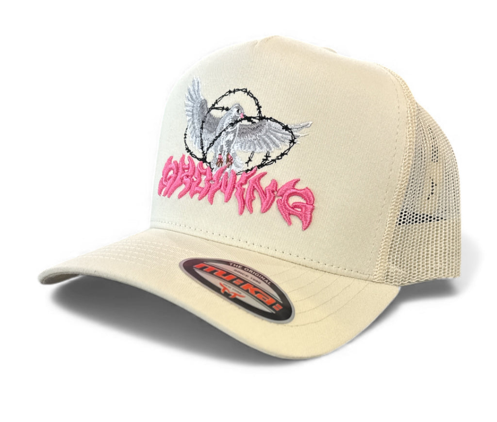 Add a clean, meaningful touch to your streetwear rotation with the MUKA “Growing Dove” Trucker Hat in Ivory. Designed with a structured front panel, breathable mesh back, and detailed embroidered dove artwork, this premium streetwear trucker hat blends symbolic design with everyday comfort. The adjustable snapback closure ensures a secure, customizable fit.