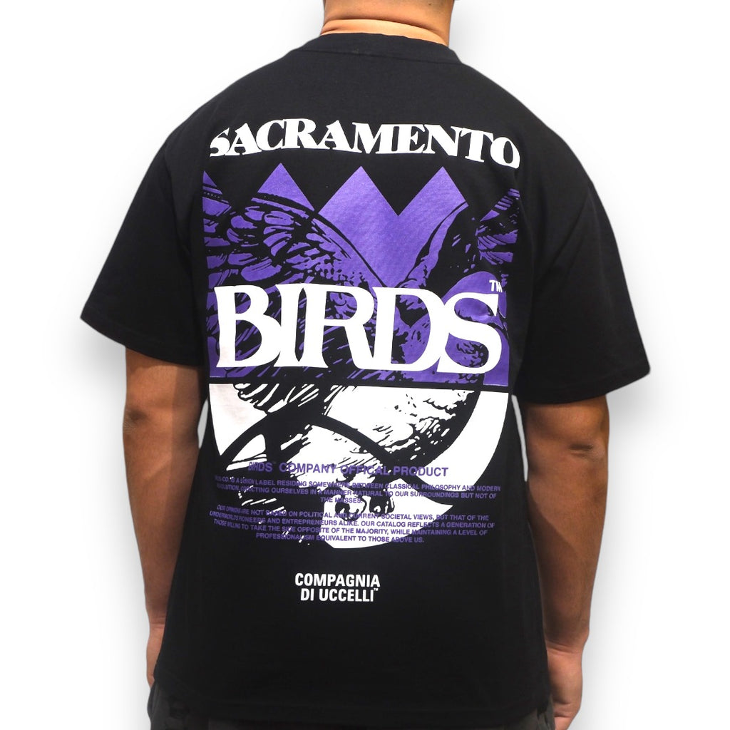 Short Sleeve cross-grain T-Shirt in White featuring the "Birds" Logo on front, "Sacramento King Birds " Logo on back. Crewneck collar. Standard fit.