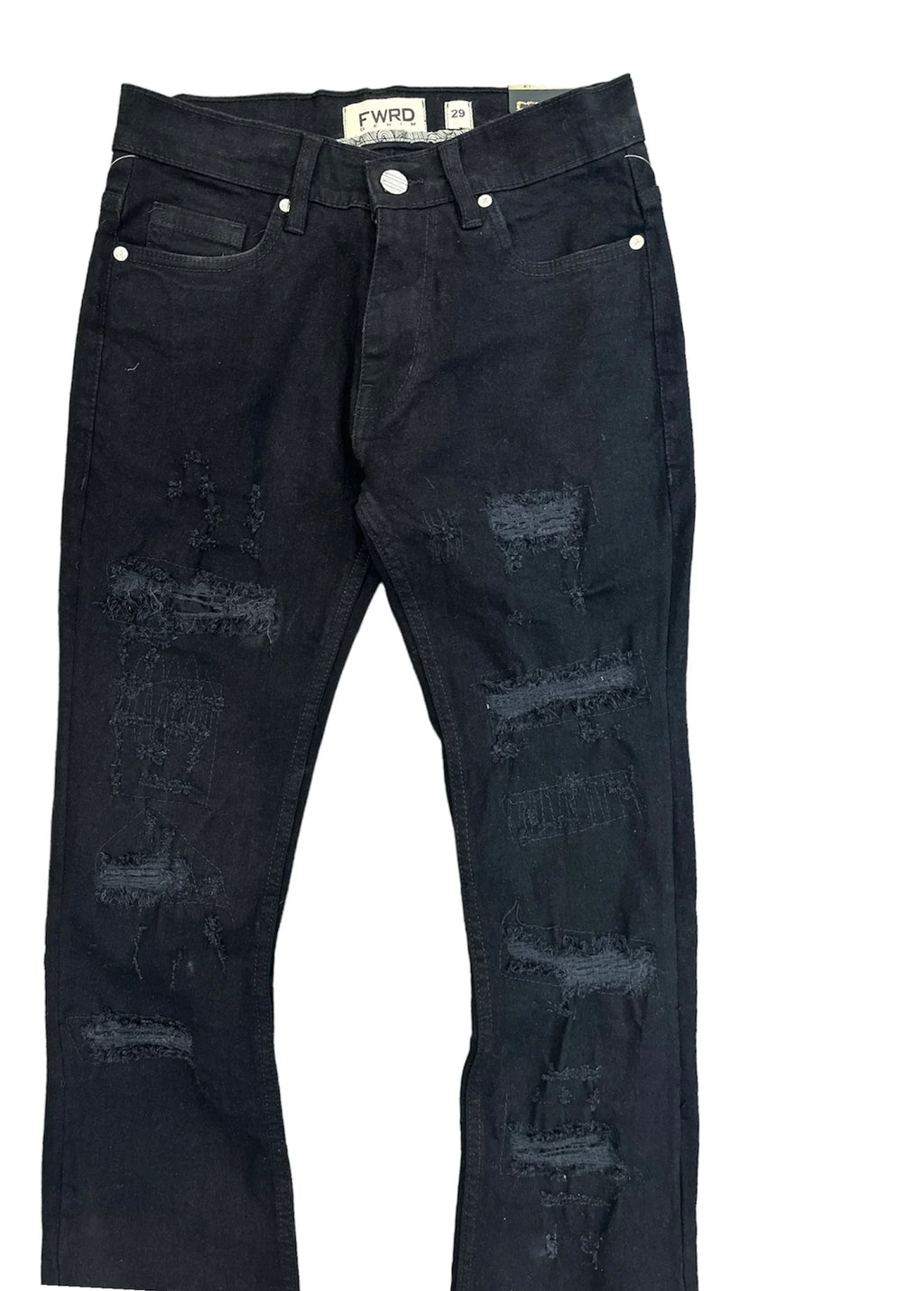 FWRD 'Worn Down' Stacked Flare Denim (Black)