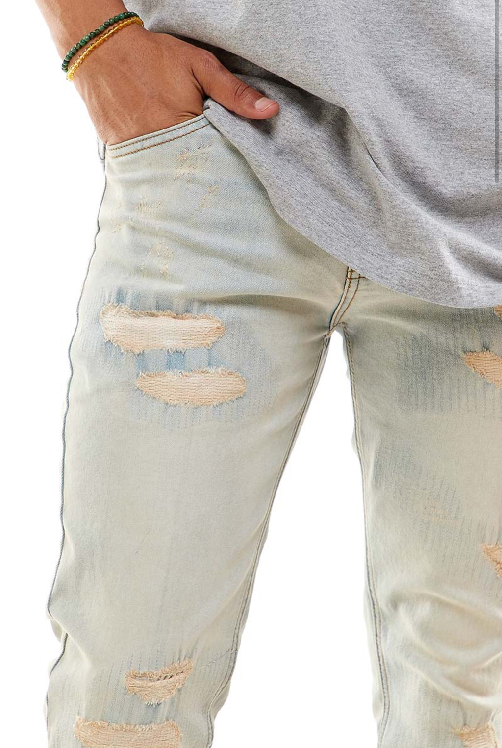 KDNK All-Over Stitch Ankle Zip Denim (VT. LT Blue) KND4193
