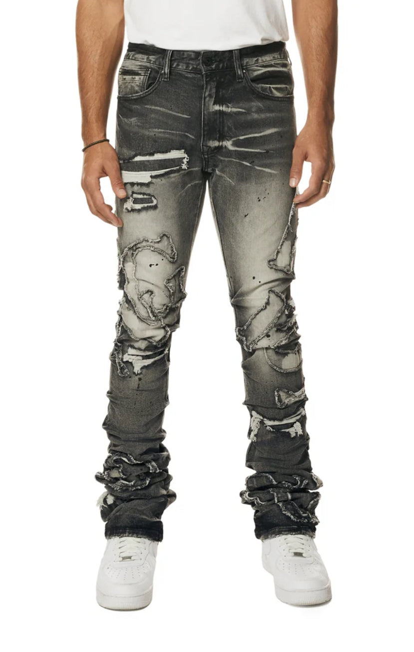 Smoke Rise 'Cut & Sewn Rip Off Letter' Denim (Black Lava) JP24118
