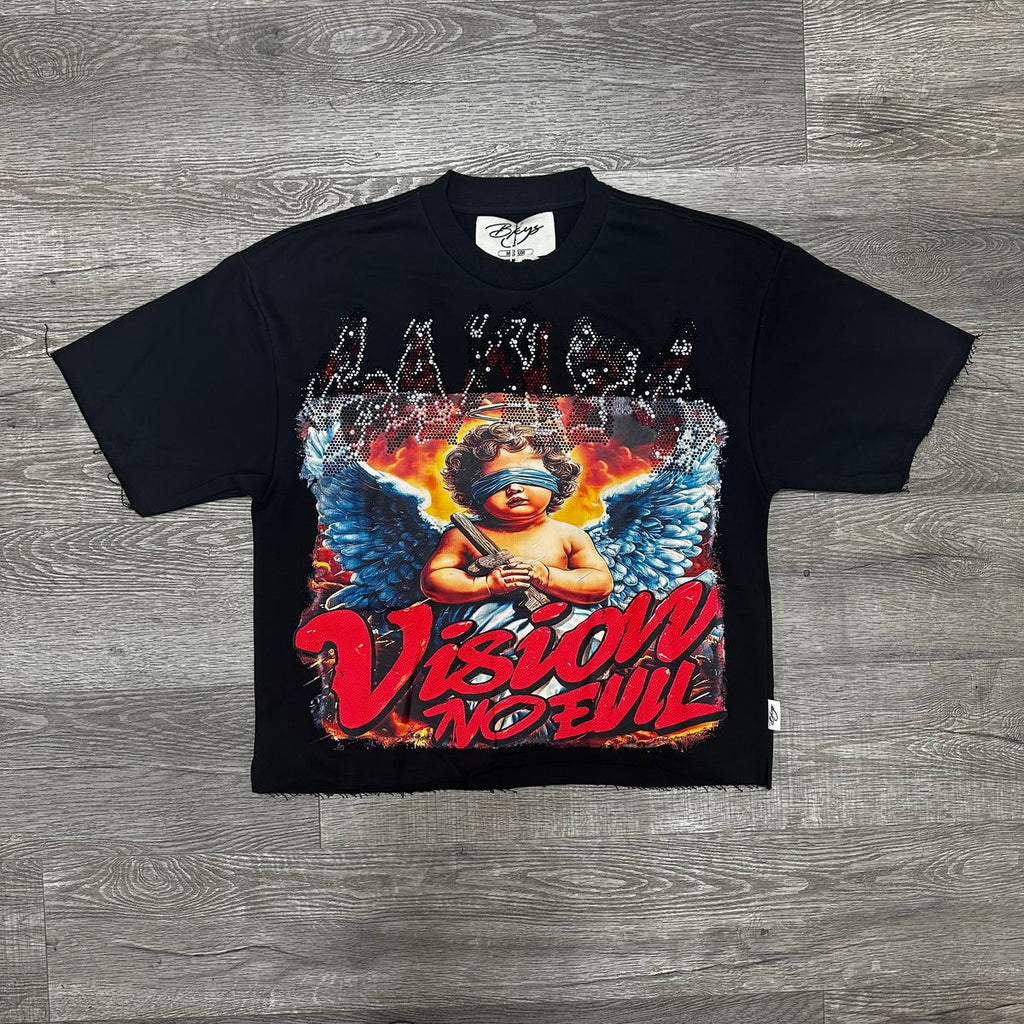 BKYS KIDS 'Saint Boys' Cropped Rhinestone T-Shirt (Black) T1448