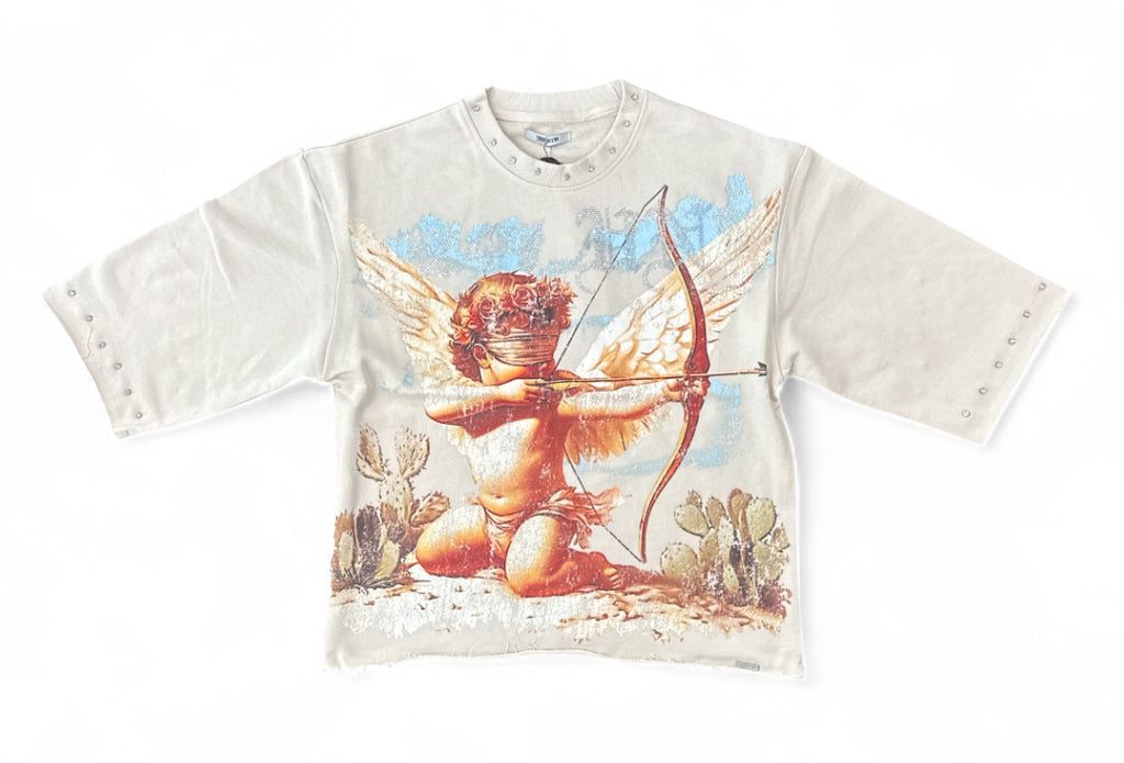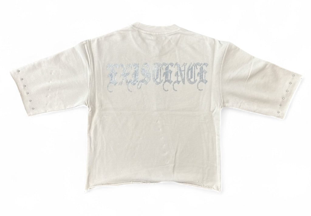Highly Undrtd 'UN Existence' 3/4 Sleeve Rhinestone Cropped T-Shirt