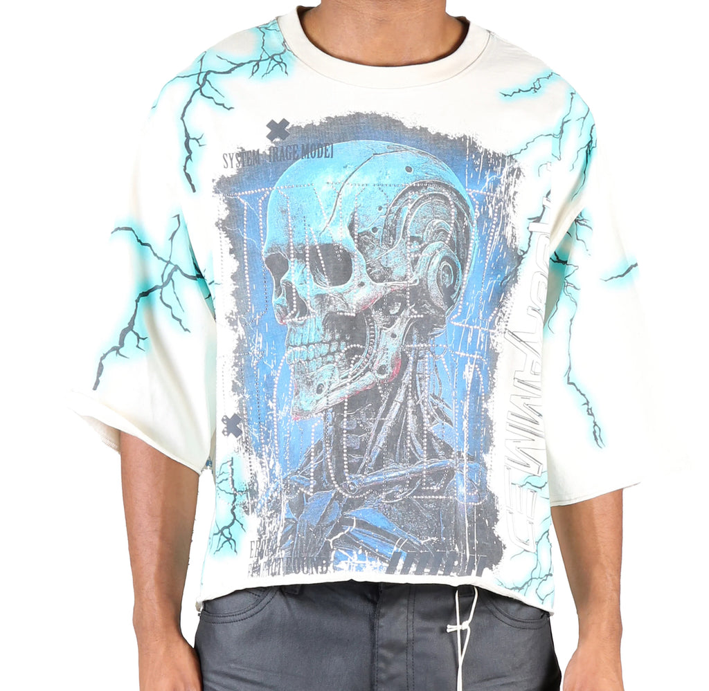 Kleep ‘TERRABLAST’ Short Sleeve Gothic Theme Cropped T-Shirt With Print & Stone Effects