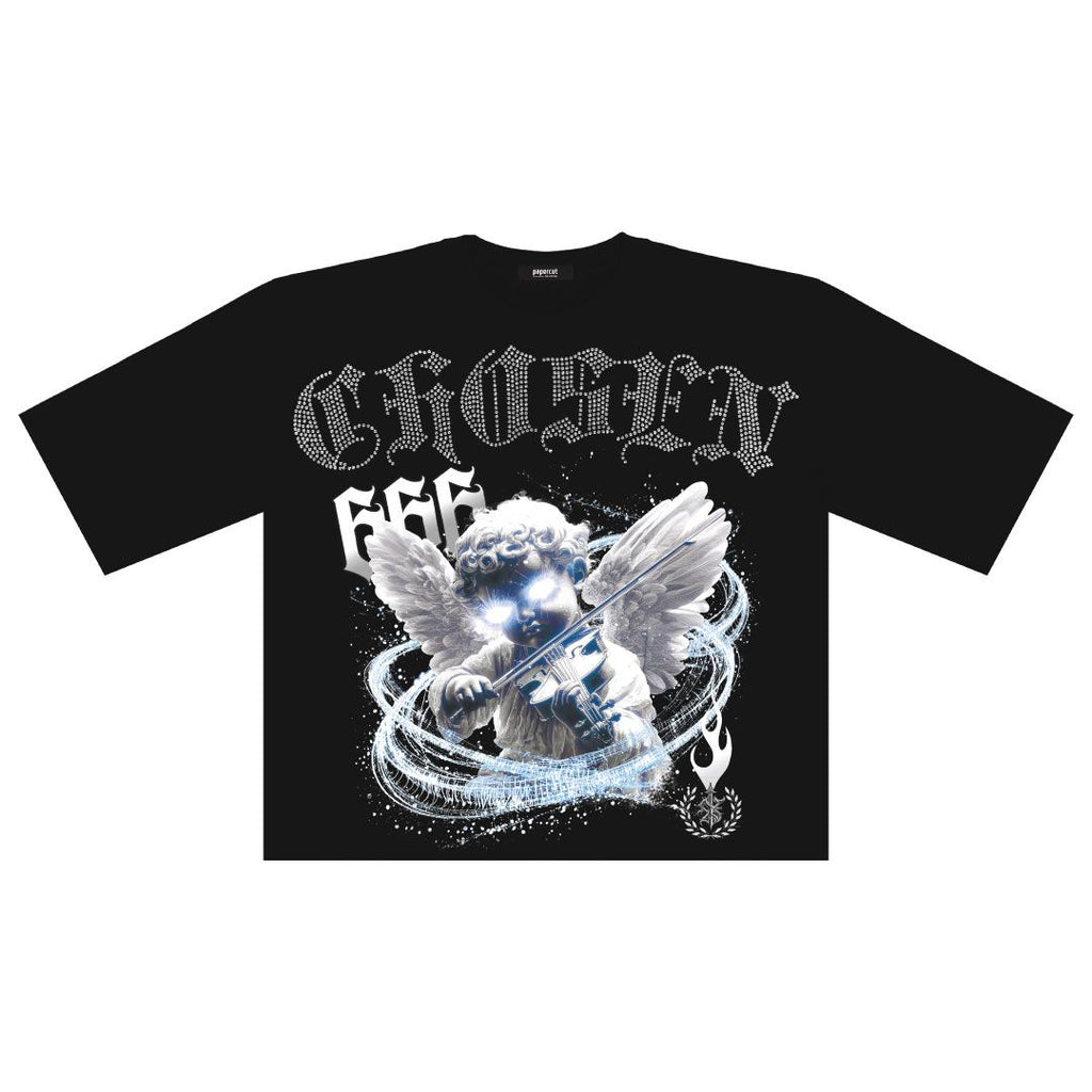 Papercut 'Chosen' Oversized Rhinestone Cropped T-Shirt