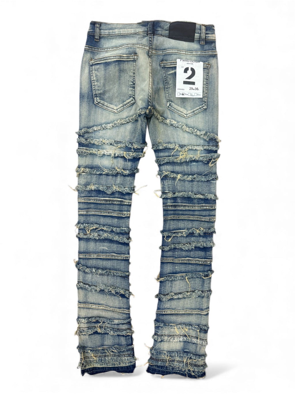 Easy to style with cropped tees, hoodies, heavyweight tees, sweat outfits, and sneaker-matching apparel, these light wash stacked denim jeans bring effortless style to any rotation. Whether you’re searching for stacked denim, men’s distressed jeans, or streetwear jeans, the FWRD Distressed Frayed Stacked Denim FW-330347 offers premium street style with a modern fit.