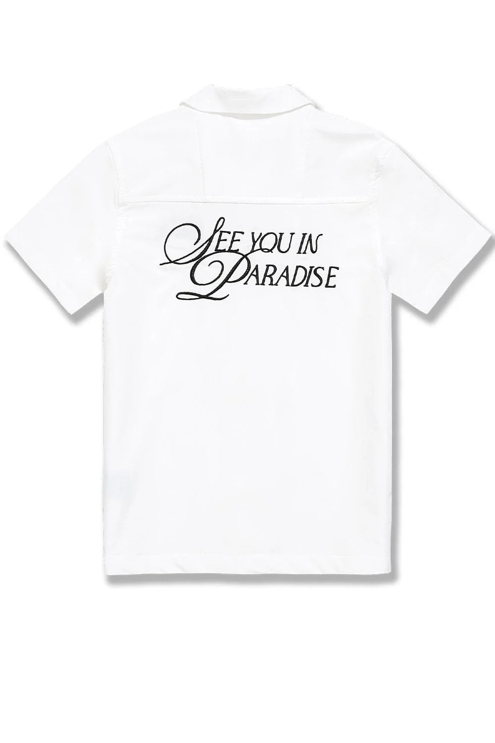 - Embroidered text on front chest and back