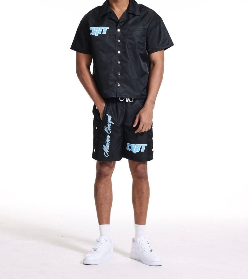 Concept LA 'Concept 11' Button Down in striking Black/Blue colorway. Premium streetwear essential featuring a clean button-down silhouette with modern design details. Perfect for layering or standalone wear. Style Code: CSET_TOP6. Elevate your casual rotation with this versatile piece that transitions seamlessly from street to studio.