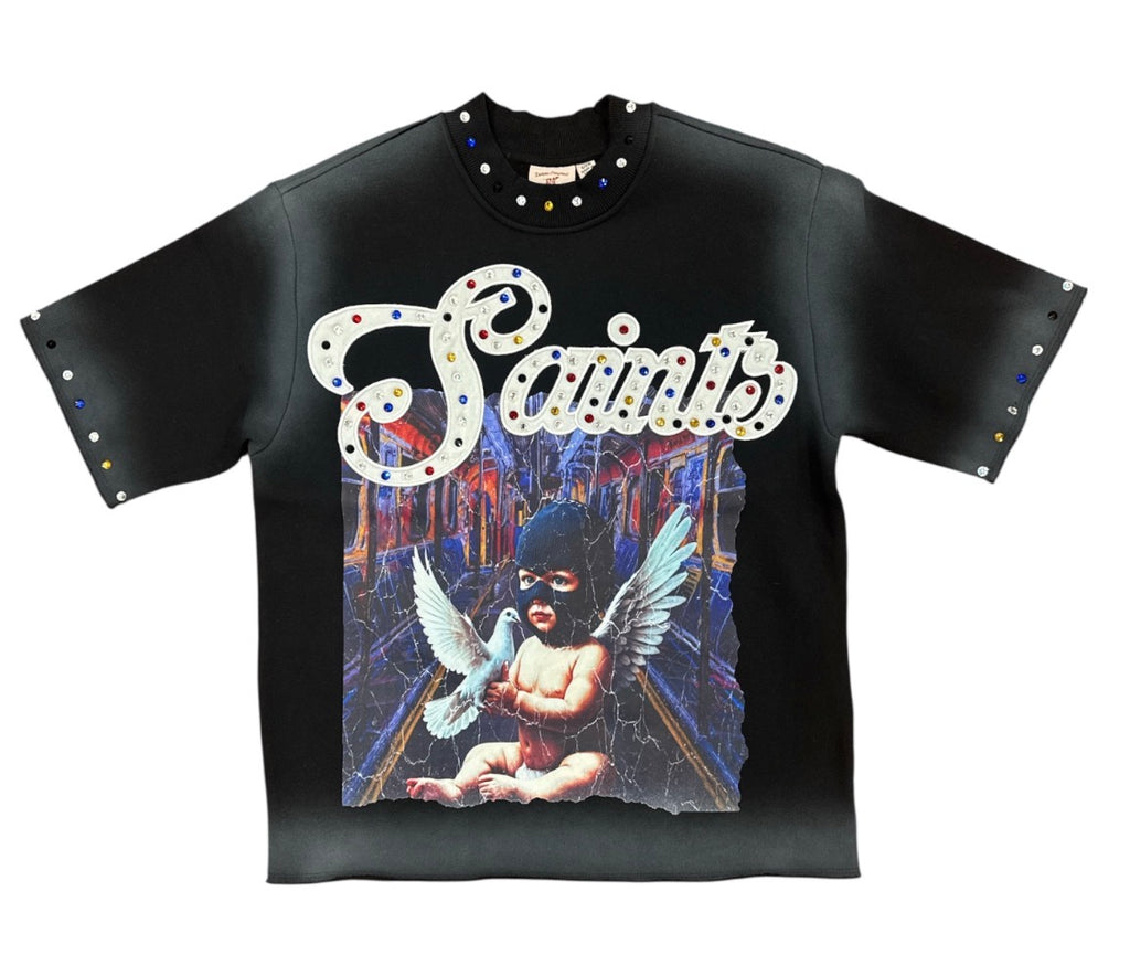 DRAPER & MAYNARD ‘Saint’ Cropped Crew Fleece Short Sleeve T-Shirt (Black) DM5301BK