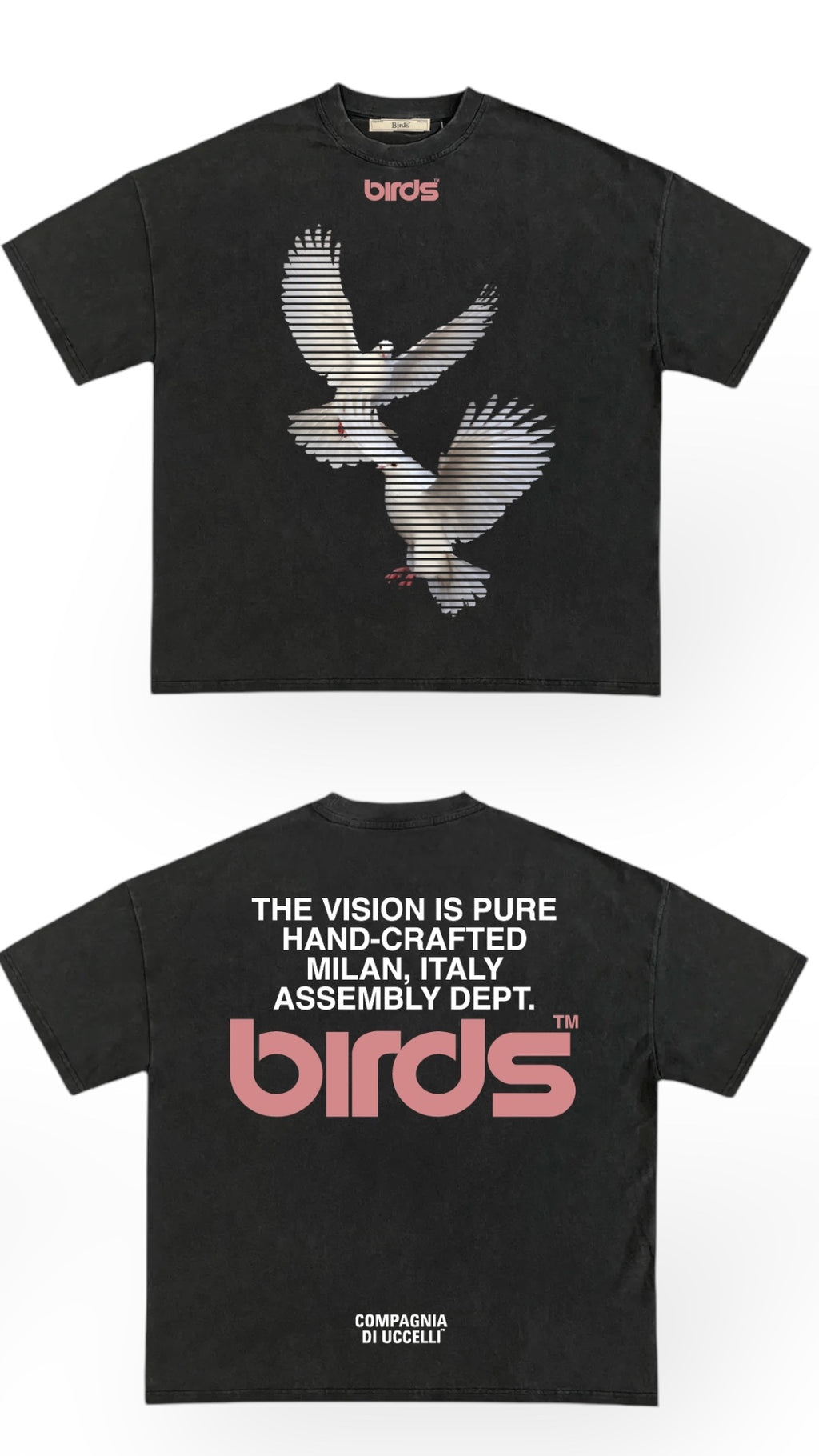 Birds 'Two Doves' Washed Onyx Oversized Ultra-Premium Box S/S T-Shirt