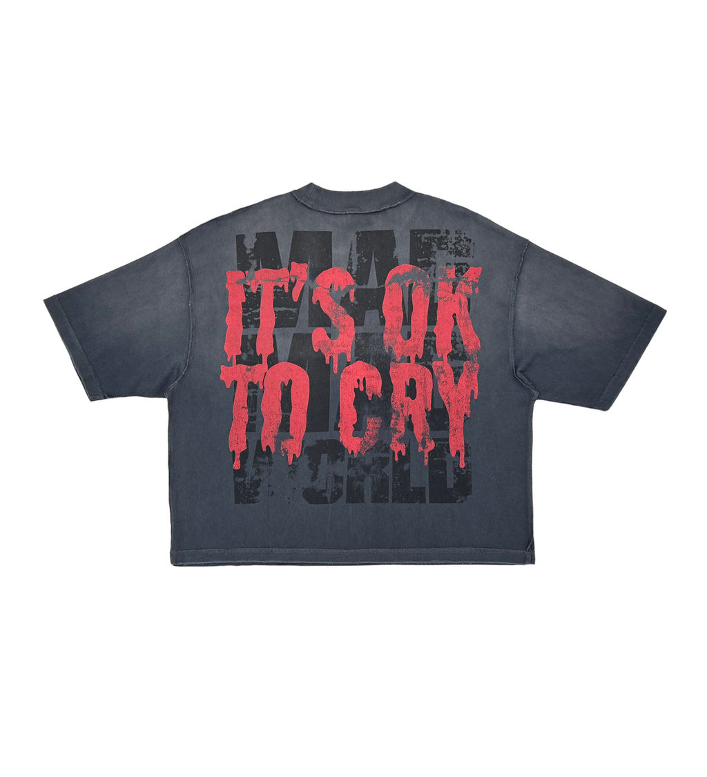 Rare Peace 'CRY Oversized Cropped T-shirt (DK. Grey) RT5031