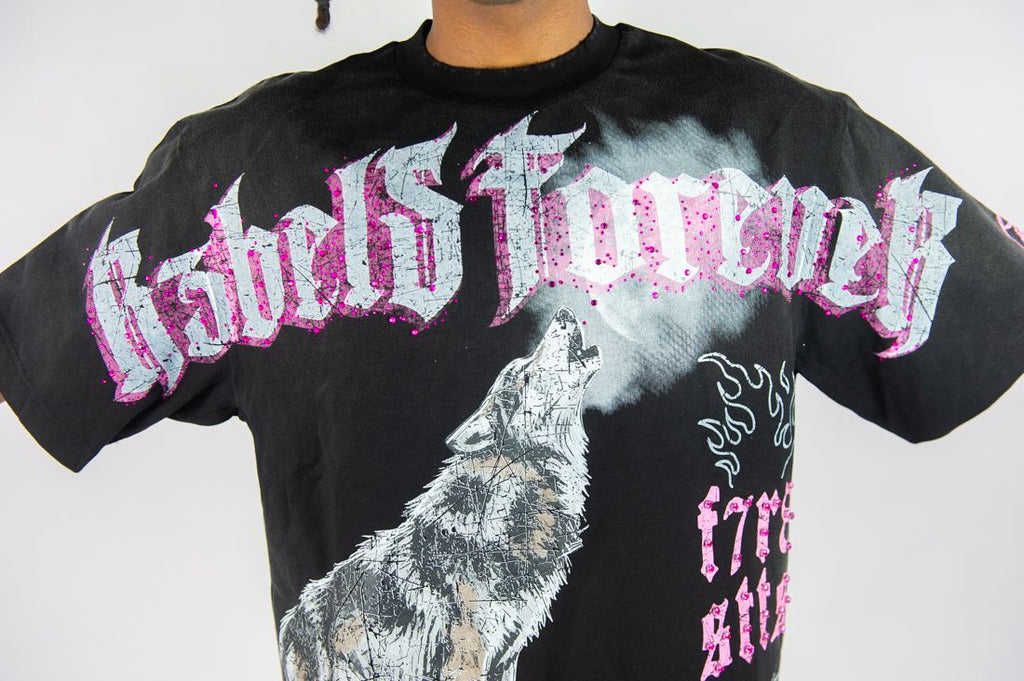Bring statement street style to your wardrobe with the Rebel Denim 'Forever' Cropped Shirt in Black. Designed with an all-over rhinestone finish, this cropped woven shirt blends rugged flannel texture with premium shine, making it a standout piece for modern streetwear outfits.