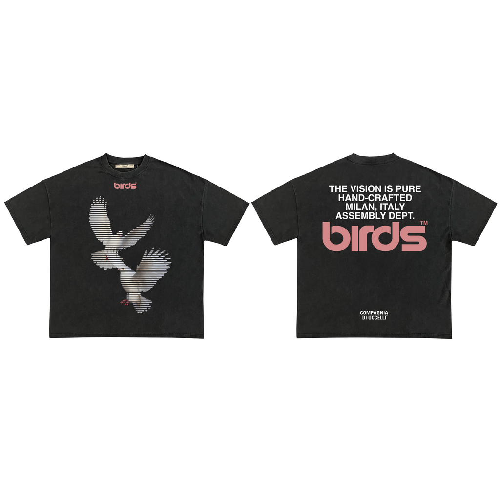 Birds 'Two Doves' Washed Onyx Oversized Ultra-Premium Box S/S T-Shirt