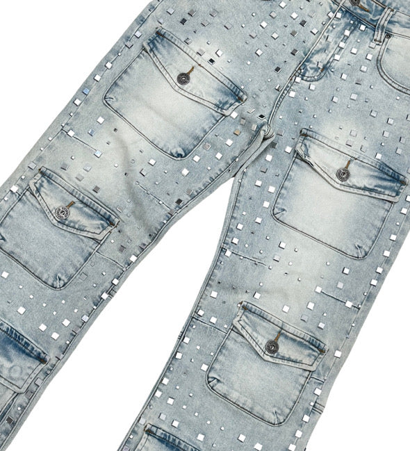 Vicious Denim 'Silver Studded' Straight Denim (Light Blue) VC754
