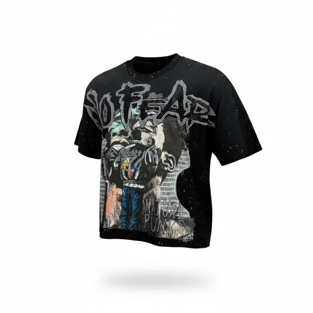 BKYS 'No Fear' Cropped Rhinestone T-Shirt