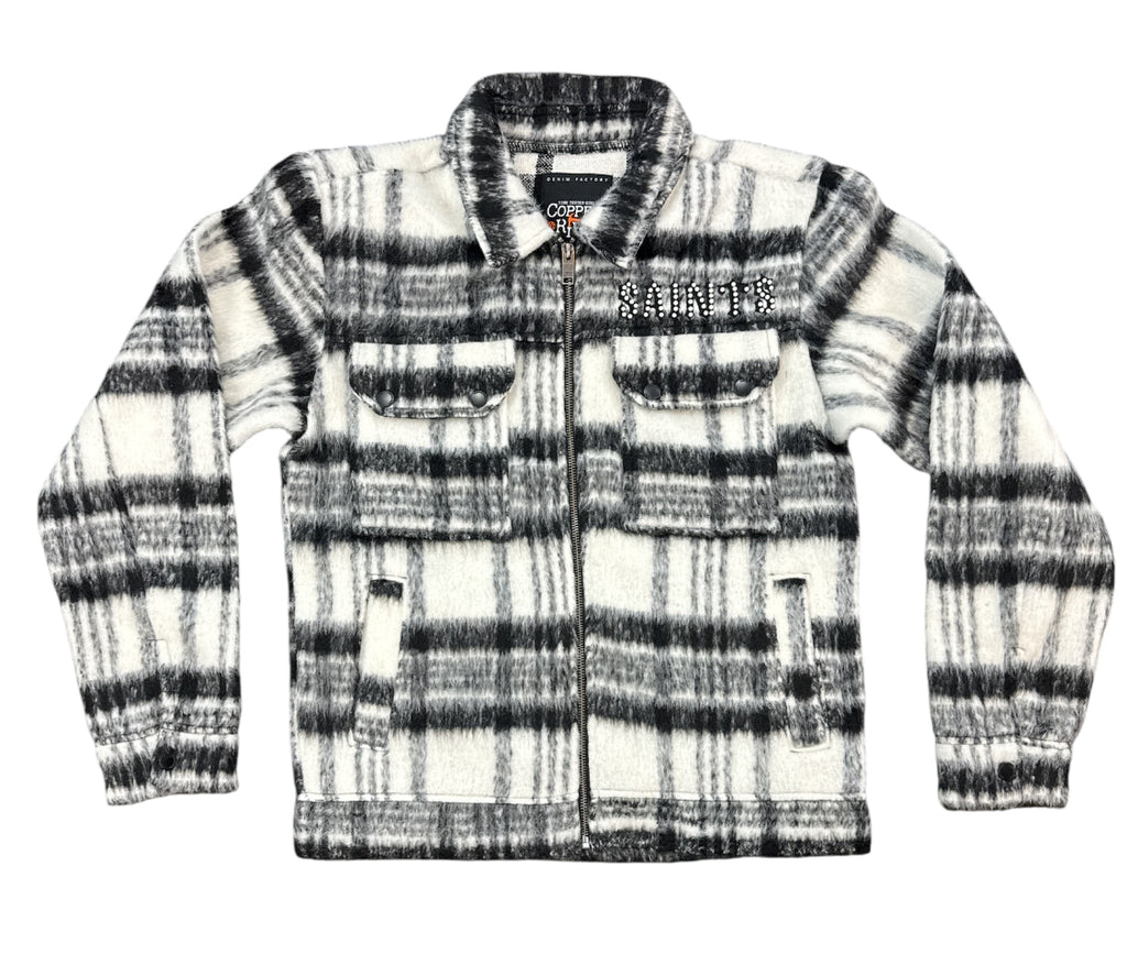 Copper Rivet Brushed Flannel Jacket With Pearl Embroidery